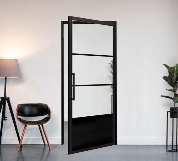 Onze collectie omvat een veelgevraagd product: de zwarte stalen scharnierdeur. Deze deuren zijn geliefd vanwege hun elegante uitstraling en duurzame karakter. Ze zijn vervaardigd uit gepoedercoat staal in RAL 9005, wat zorgt voor een krasbestendige afwerking.