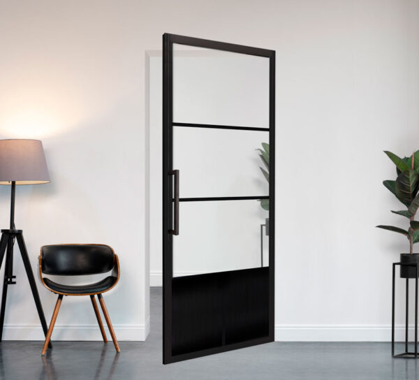 Onze collectie omvat een veelgevraagd product: de zwarte stalen scharnierdeur. Deze deuren zijn geliefd vanwege hun elegante uitstraling en duurzame karakter. Ze zijn vervaardigd uit gepoedercoat staal in RAL 9005, wat zorgt voor een krasbestendige afwerking.