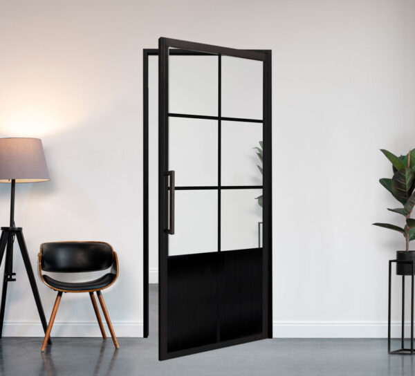 Onze collectie omvat een veelgevraagd product: de zwarte stalen scharnierdeur. Deze deuren zijn geliefd vanwege hun elegante uitstraling en duurzame karakter. Ze zijn vervaardigd uit gepoedercoat staal in RAL 9005, wat zorgt voor een krasbestendige afwerking.